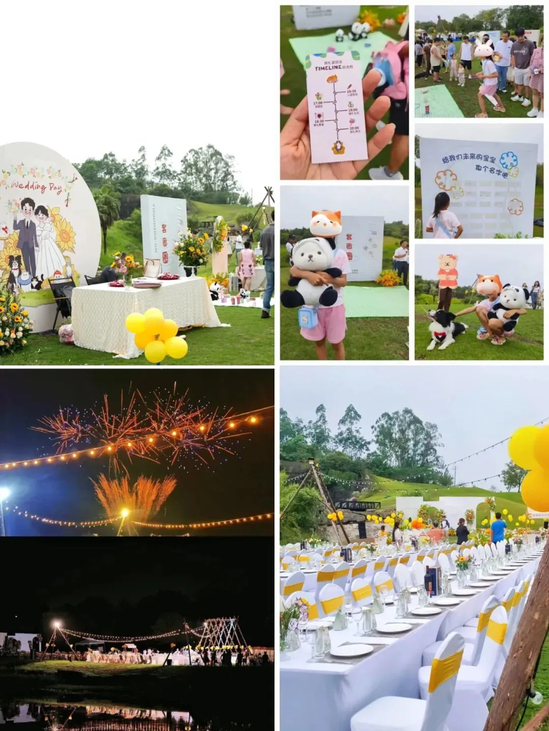 餐食以西餐為主,有一半是冷餐,有廚師現場煎牛排,晚餐後還有篝火、煙花,還可以唱歌,放河燈。事後,很多人反饋從來沒有參加過這麼開心的婚禮。婚禮整體花費大約在6萬元,包含餐食在內。