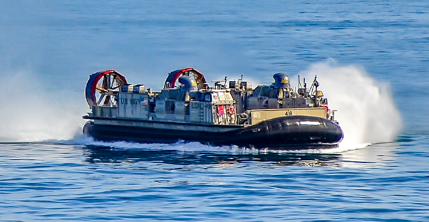 相比體量龐大,氣勢磅礴的“野牛”級氣墊登陸艇,726型“野馬”級中型氣墊登陸艇則主打一個玲瓏小巧,在噸位級別、總體設計、作戰用途等方面來説,更趨近於美海軍陸戰隊裝備的LCAC氣墊登陸艇。