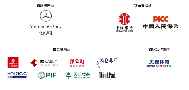 4,贊助商參與熱情上漲。按照賽事贊助規劃,中網依舊採用“1個首席+3個鑽石+8個白金”的贊助商模式,還有10個合作伙伴,再次實現全部滿額。其中,首席贊助商為北京奔馳,鑽石贊助商為中信銀行、ROLEX(勞力士)與中國人民保險,白金贊助商為阿聯酋航空、嘉實基金、崑崙山雪山礦泉水、特侖蘇、HOLOGIC、PIF、天壇整裝與ThinkPad(聯想)。