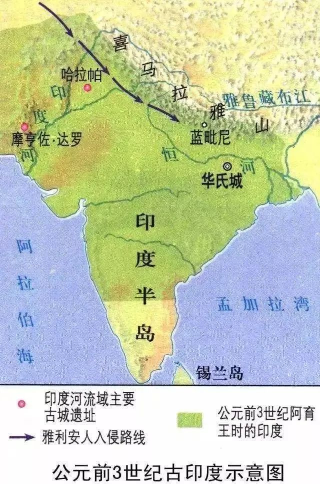 公元前2000年,西亞的雅利安人入侵南亞,印度河文明遭受重大打擊,在未來近千年間,南亞政治核心從印度河流域逐漸轉移到恆河流域,達羅毗荼人則被迫遷至印度半島南部。