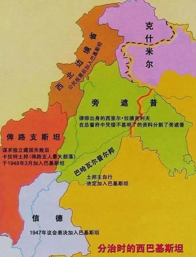 印度河流域上游歸克什米爾土邦統治,中游區域歸英國直轄的旁遮普省。