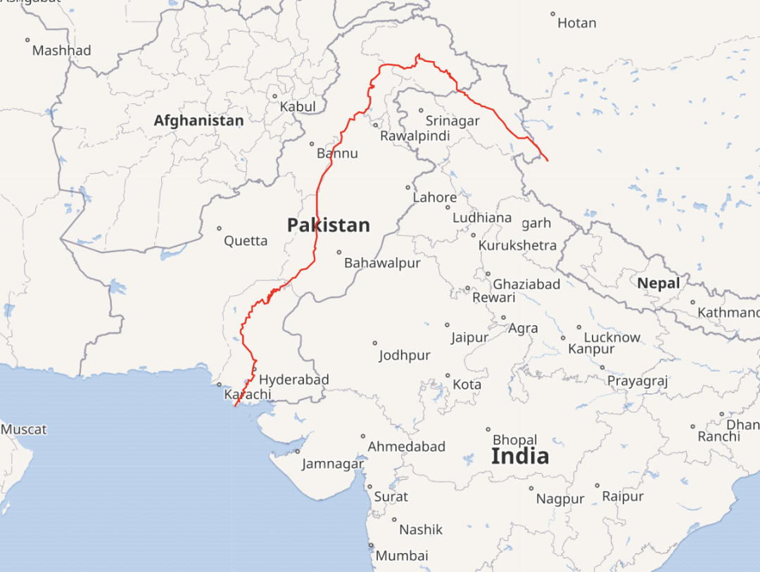 但觀察地圖就會發現,印度河不屬於現代的印度境內,而是在巴基斯坦境內。