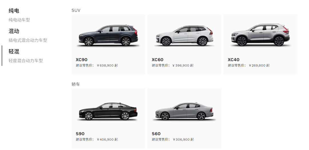 現在沃爾沃所有車型的動力分為三種:純電,插混和 48V 輕混。