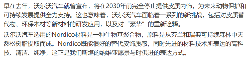當別家內飾都在説怎麼怎麼豪華的時候,沃爾沃宣傳的都是,我家材料是怎麼怎麼可再生。
