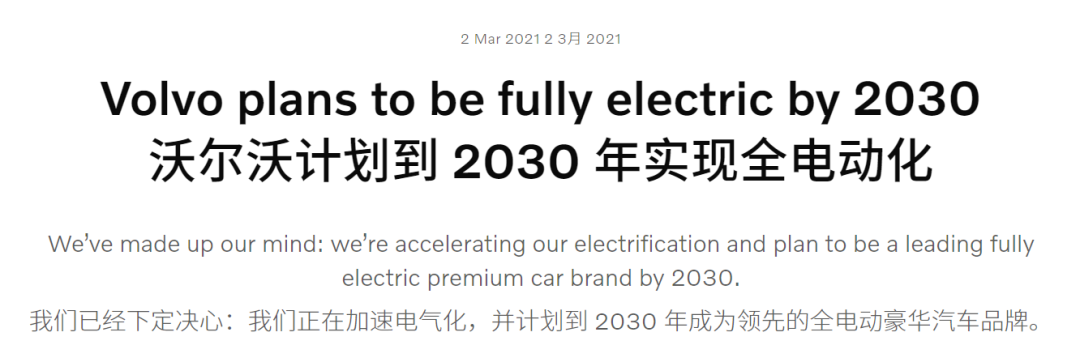 雖然沃爾沃和吉利的這個操作,會讓人覺得有左手倒右車之嫌,但從後面的情況來看,沃爾沃這個品牌真就是在 ALL IN 電動化。