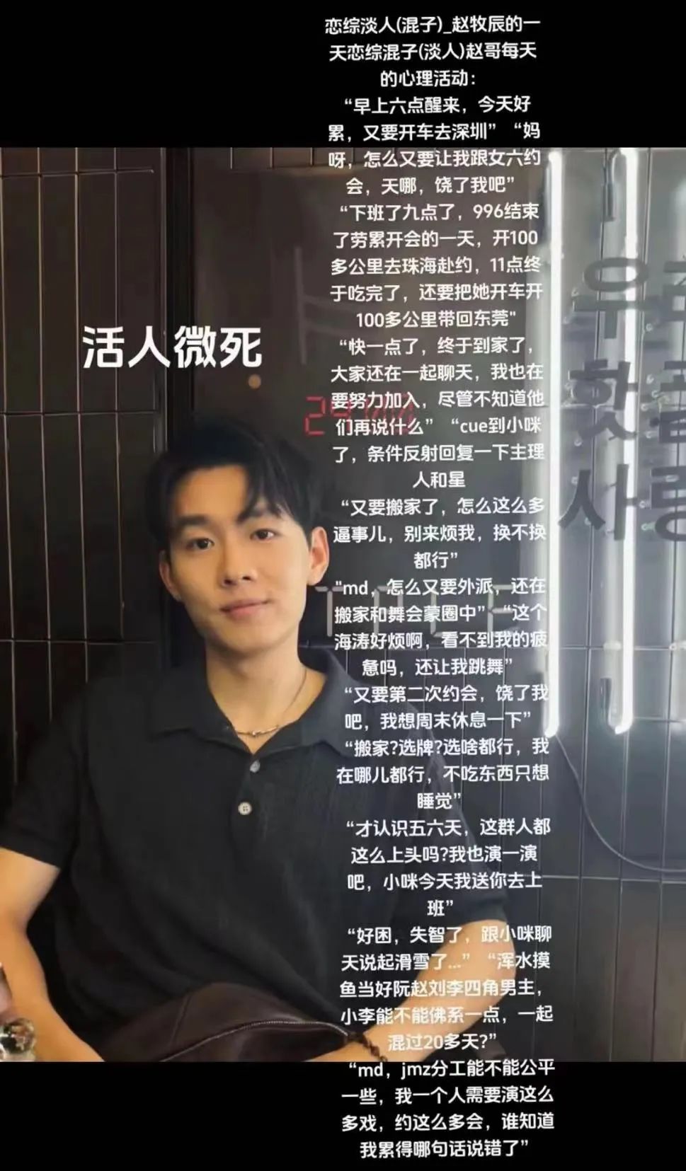 與此同時,趙牧辰喜提“戀綜淡人(混子)”稱號,不少網友們紛紛列出他一天從早六點到晚一點的跨城工作、約會行程,相關片段風靡短視頻、社交平台,而他的那一句“你覺得重要嗎”也成為玩梗金句,在這位榮耀產品經理參與的9月25日榮耀直播間裏被網友不斷刷屏。