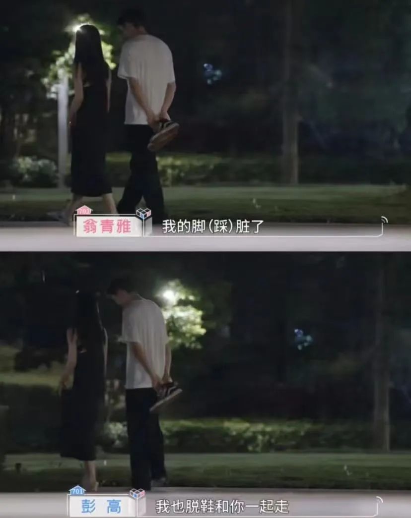 而嘉賓們在節目裏賽過偶像劇的表現也正給CP粉持續磕糖提供了源動力,比如彭高看着翁青雅時的星星眼、痴漢臉,以及脱鞋陪着翁青雅走泥路、那一句“期待我們在肯尼亞相遇吧,青雅”,都能被網友一一被劃入戀綜名場面。
