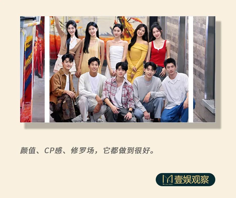 從某種程度上來説,戀綜與偶像劇類似,其中一個看點或提供的一個情緒價值和滿足,是造夢或製造一個相對夢幻、粉紅的氛圍。而高顏值,自是吸引節目受眾的有力方式之一。