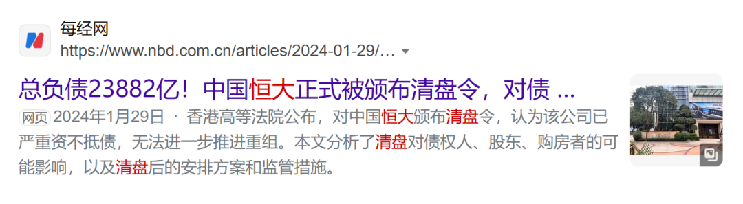 前陣子我忘了哪個官方機構對外宣佈,這幾年最大的一些結果,其中有一個完成了恒大的破產清算
