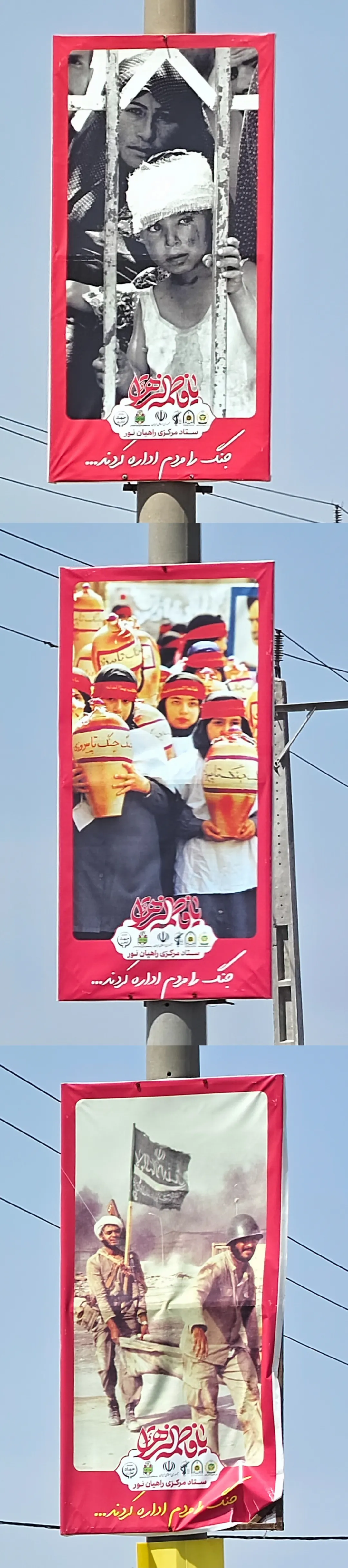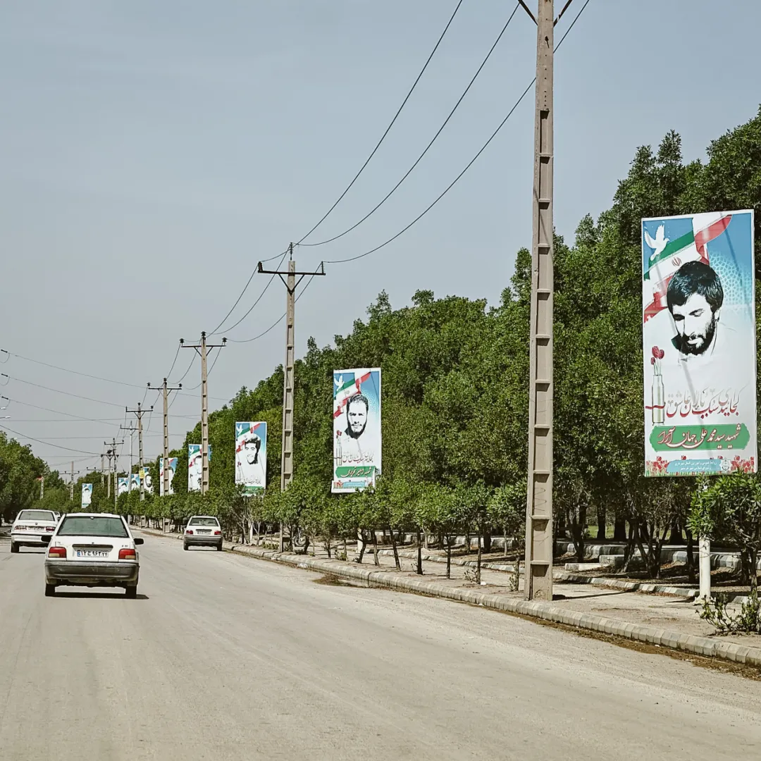 霍拉姆沙赫爾前往伊拉克口岸一路的電線杆上,掛滿了紀念戰爭的海報和“烈士”的畫像。這片地區曾是兩伊戰爭最後也是規模最大的一場戰役——巴士拉圍城戰的戰鬥地點,野地裏散落着當年坦克和裝甲車的殘骸,因而成為了伊朗人民的“革命教育基地”。巴士拉圍城戰是伊朗破釜沉舟的最後瘋狂,6萬人戰死沙場,其中5萬人是伊朗方面的;戰成僵局之後,伊朗無力再發動新的攻勢,只能接受停火……
