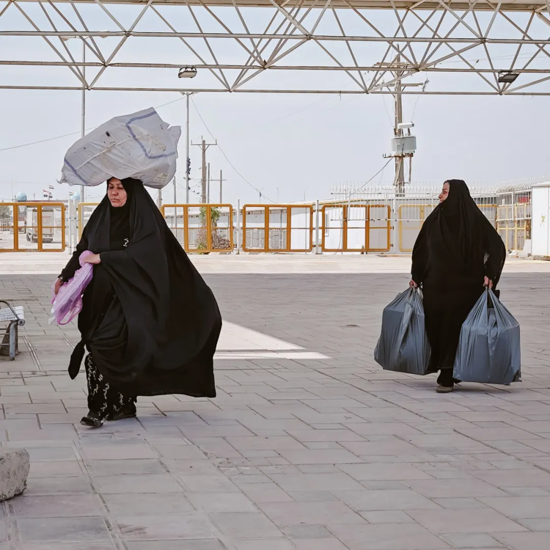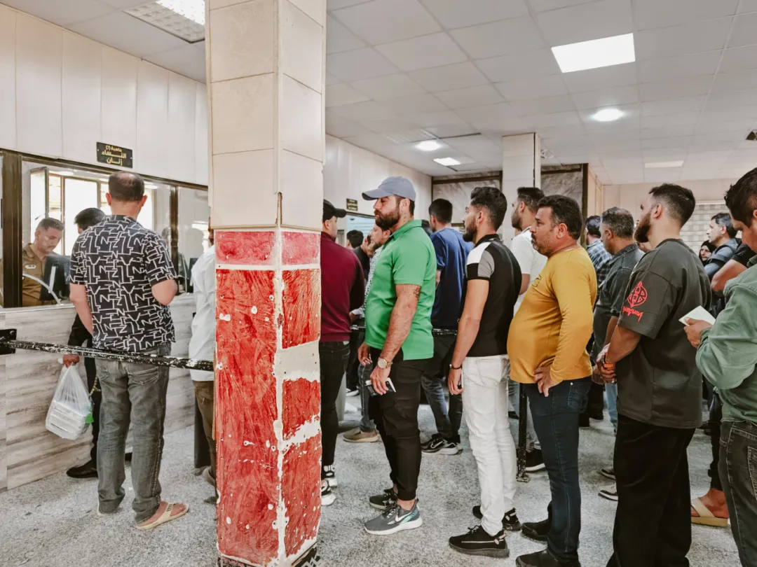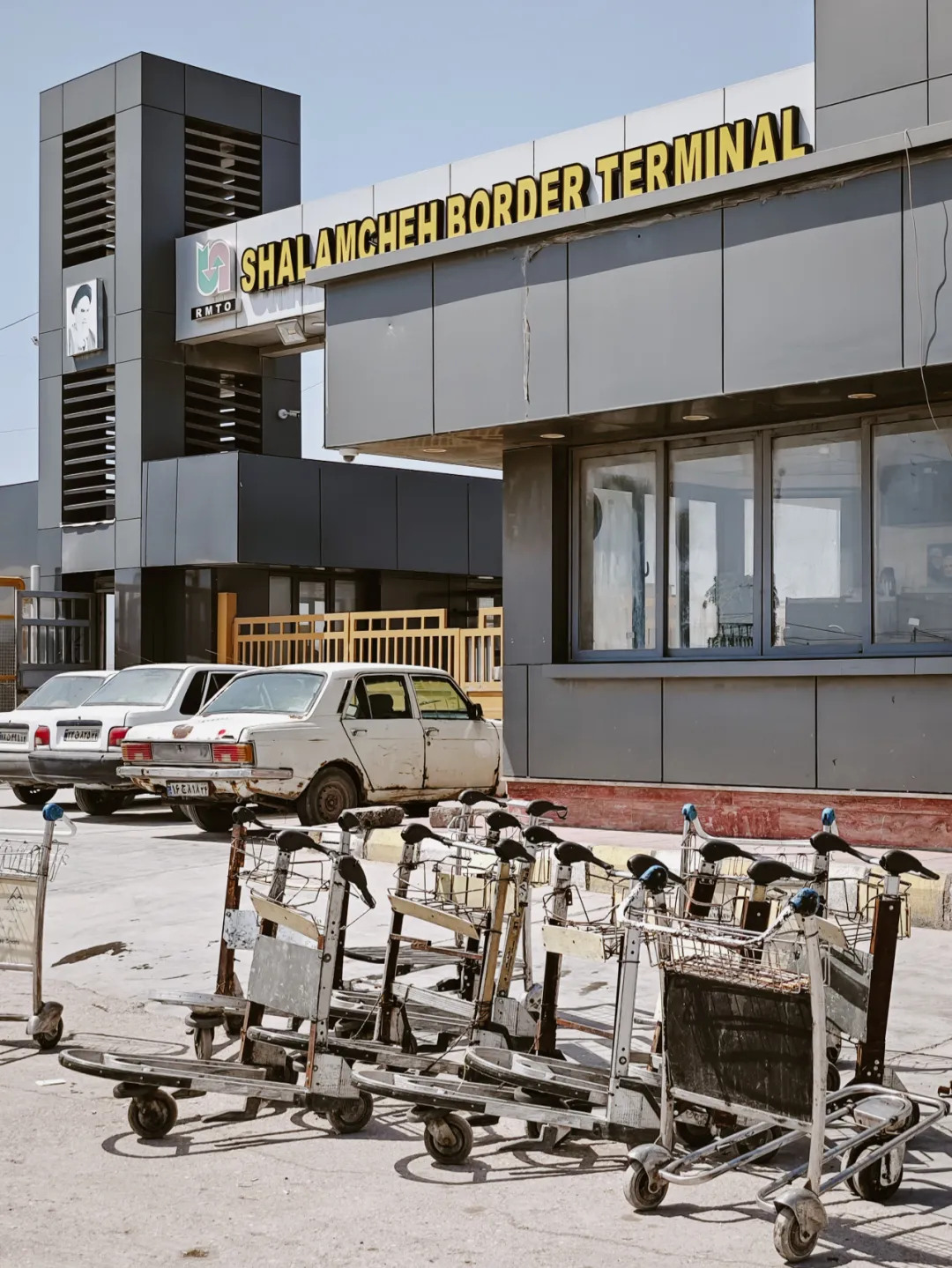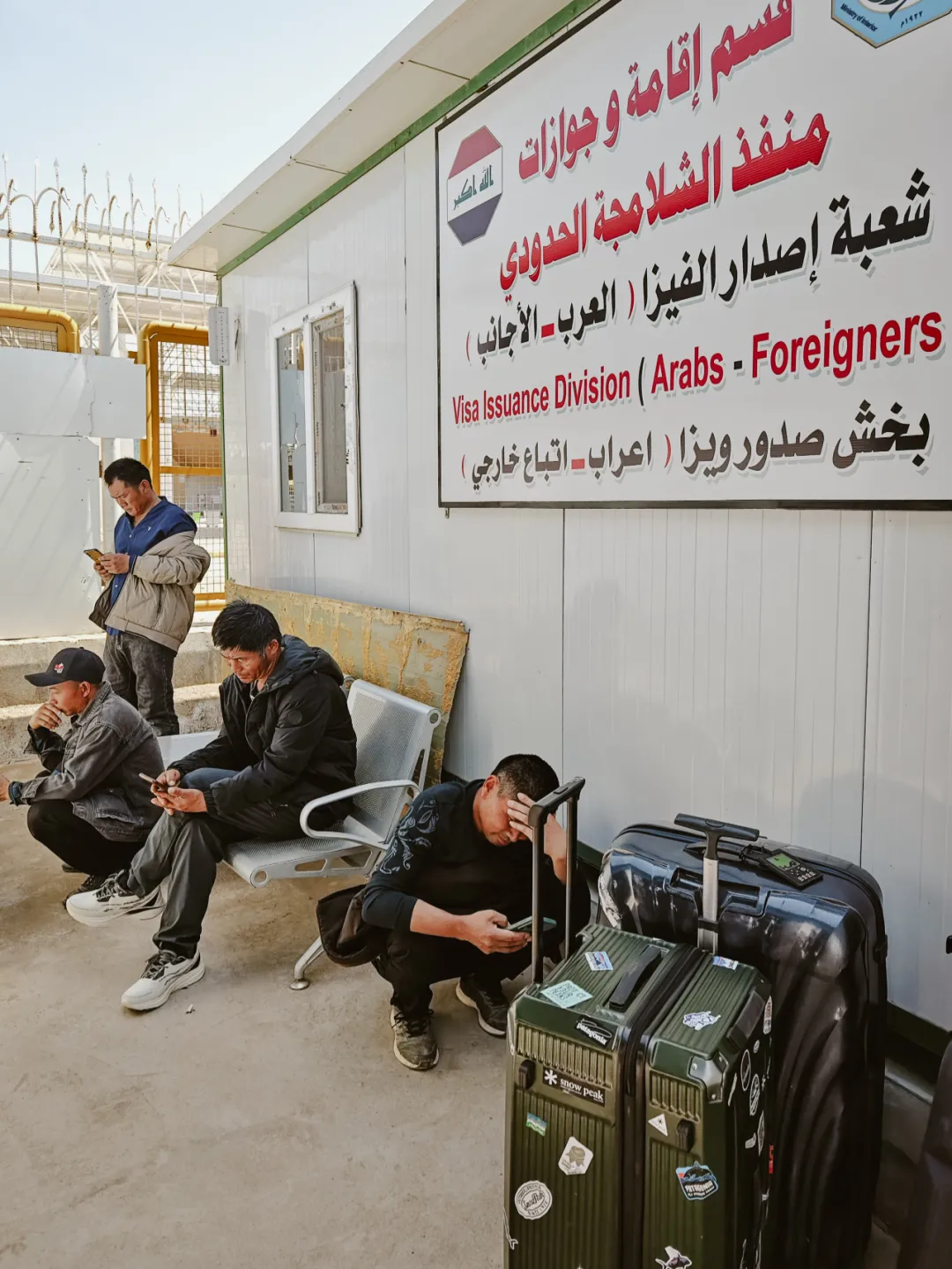 他們是當天早上從工地宿舍坐包車過來的,車子就在伊拉克的口岸外面等着他們。這些工人走一遍出入境流程到伊朗,然後再反過來走一遍出入境流程回伊拉克;更新好籤證之後坐着早上來的車回工地,所以什麼行李都沒有。那翻譯幫工人填申請表格的時候,我看到有些人的護照上確實已經有了五、六張伊拉克簽證,説明在這兒呆了至少一年。