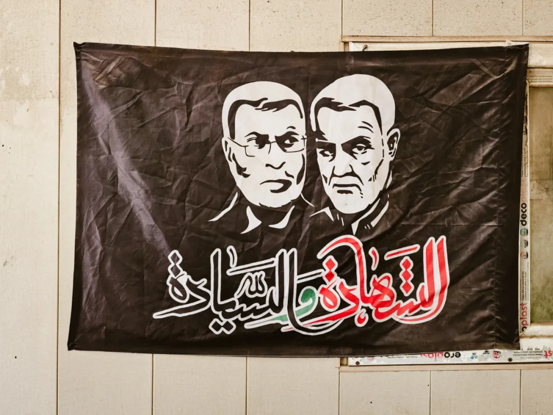 出口處也是一樣的情況,兩邊倆魔頭,不過中間除了蘇萊曼尼之外,還多一個戴眼鏡的大鬍子……入境伊拉克之後,也到處能看到蘇萊曼尼都跟這個眼鏡大鬍子成雙成對出現。這個大鬍子叫阿布·馬赫迪·穆罕迪斯(Abu Mahdi al-Muhandis),曾經是伊拉克什葉派武裝集團**“人民動員力量”**(Popular Mobilization Forces)的指揮官,是伊拉克最有權勢的人之一,在2020年1月3號跟蘇萊曼尼一起在巴格達國際機場死於了美國的無人機刺殺。