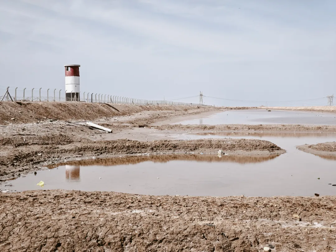▲兩伊陸路邊境也有一條界河,其實是條運河水溝,經常會有海水倒灌,因此鹽鹼化程度很高