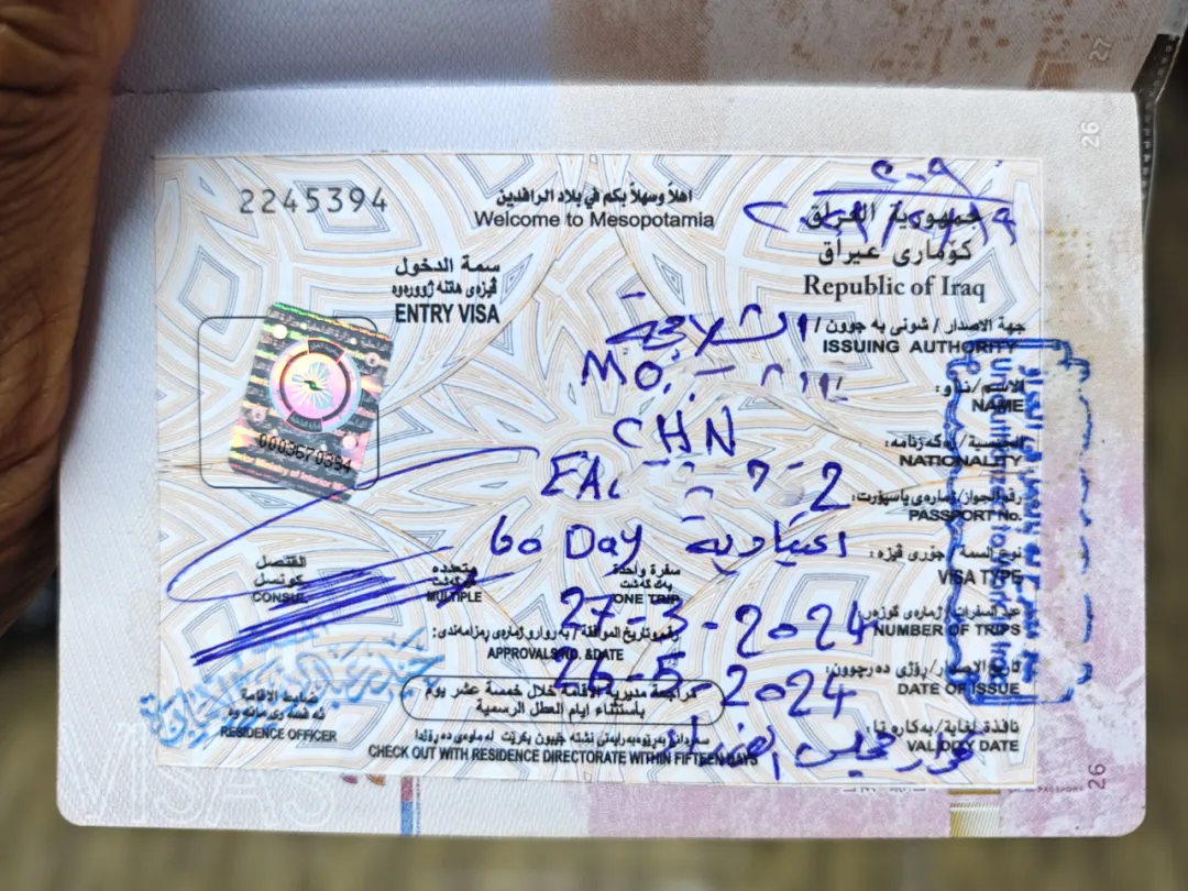 ▲手寫的簽證已經不多見了,關鍵還是歡迎來到美索不達米亞