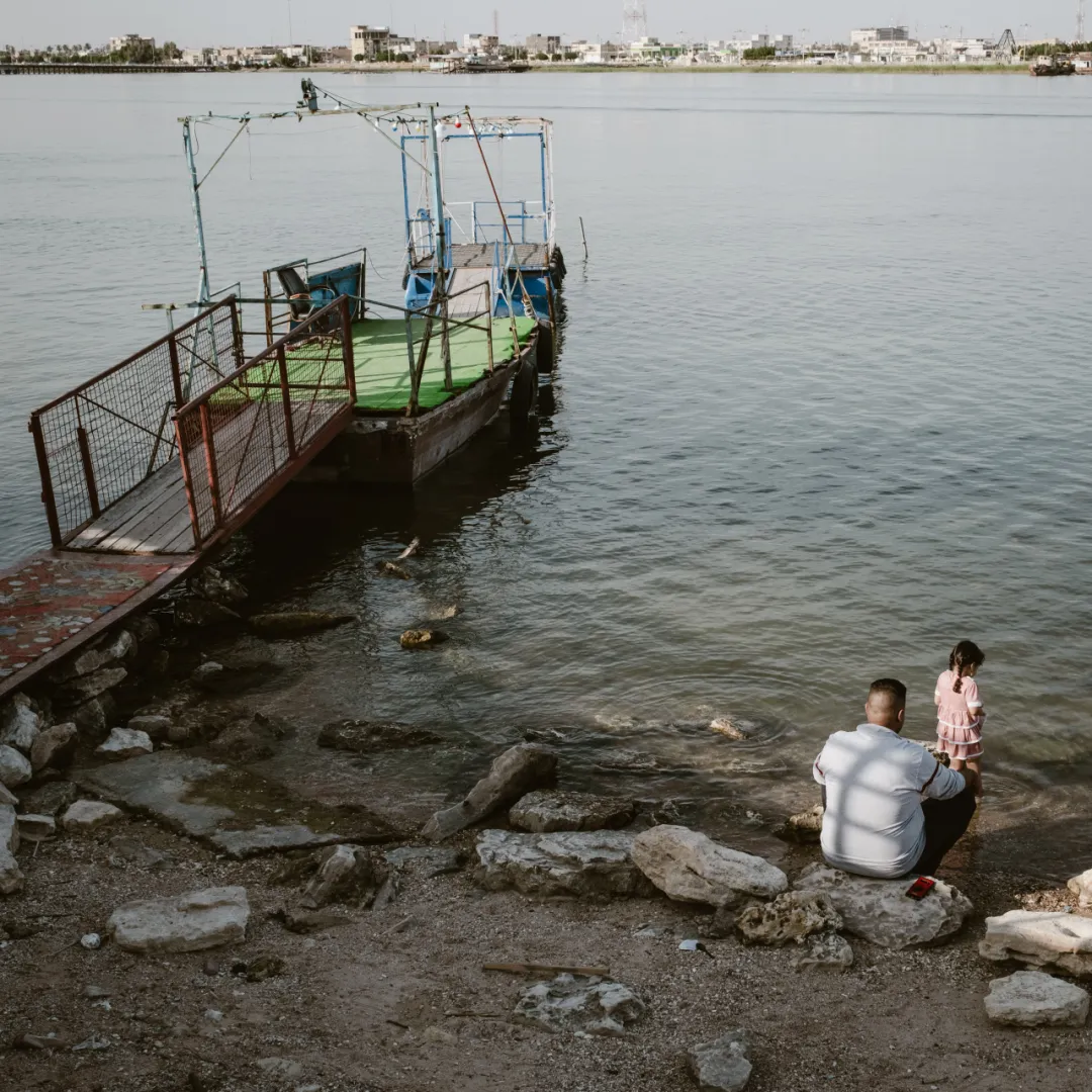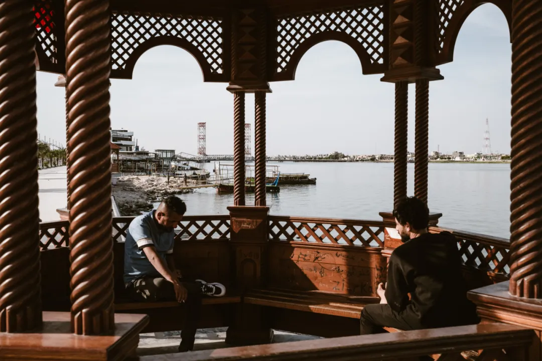 我們循着地圖一路來到巴士拉的濱河大道——假如説巴士拉要對標上海,那麼這裏就該是巴士拉的“外灘”。憑良心講,伊拉克政府下功夫建設過巴士拉的濱河,沿河修建了休閒觀光的基建設施, 有步道有涼亭有欄杆,甚至還有免費的無線網絡。但這個“外灘”卻是空空蕩蕩人煙稀少,僅有的幾棟臨河大型建築,要麼處於爛尾狀態,要麼是閒置狀態。地圖上標示着這個濱河有一家五星級的巴士拉國際大酒店(Basra International Hotel),跑到實地一看卻已經停業;網上依然能搜到這家酒店,但官網點進去鏈接到的是他們的巴士拉機場店。