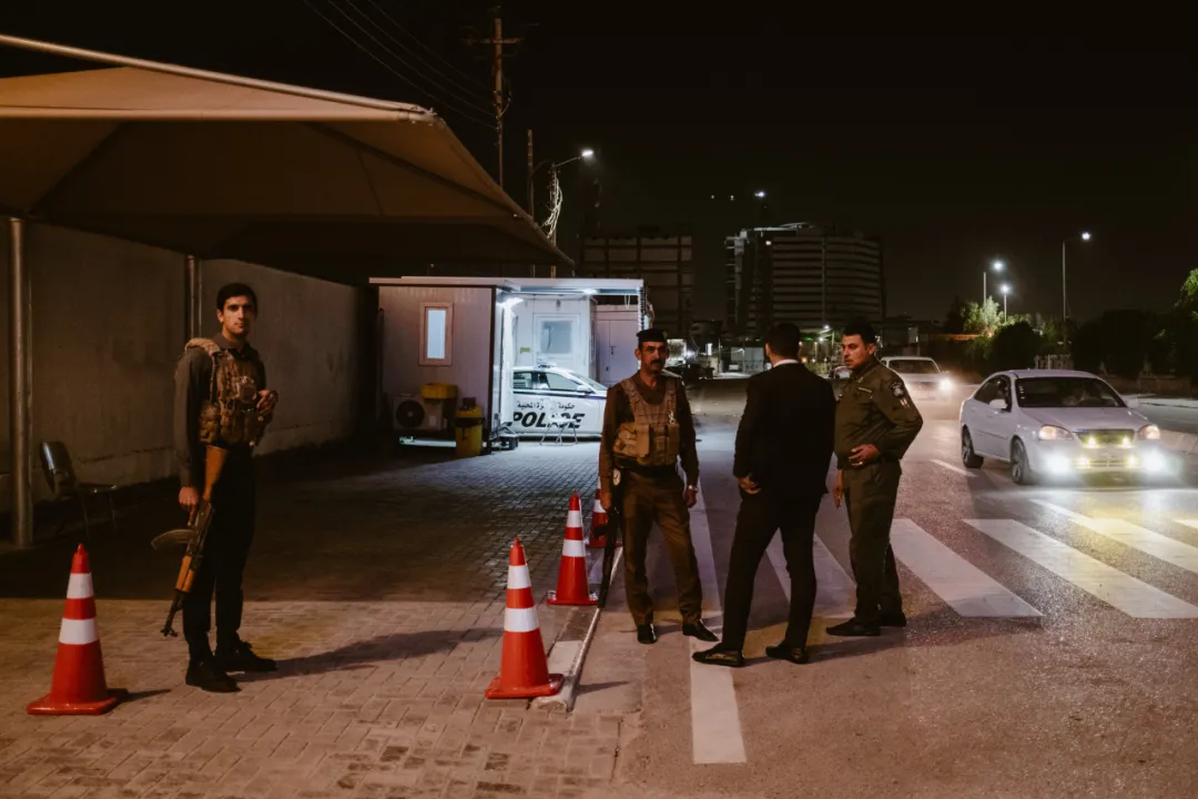 由於受到恐怖襲擊的威脅,伊拉克的高端酒店需要安檢才能入內。整個酒店被高牆圍了起來,前後兩邊的路口都有警察在執勤,連酒店對面停車場的保安都揹着一把突擊步槍。巴士拉“柏悦”入口是個很小的安檢活動板房,只進不出,出口在另一邊。