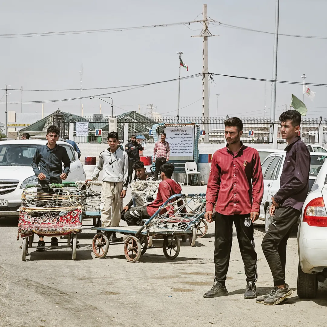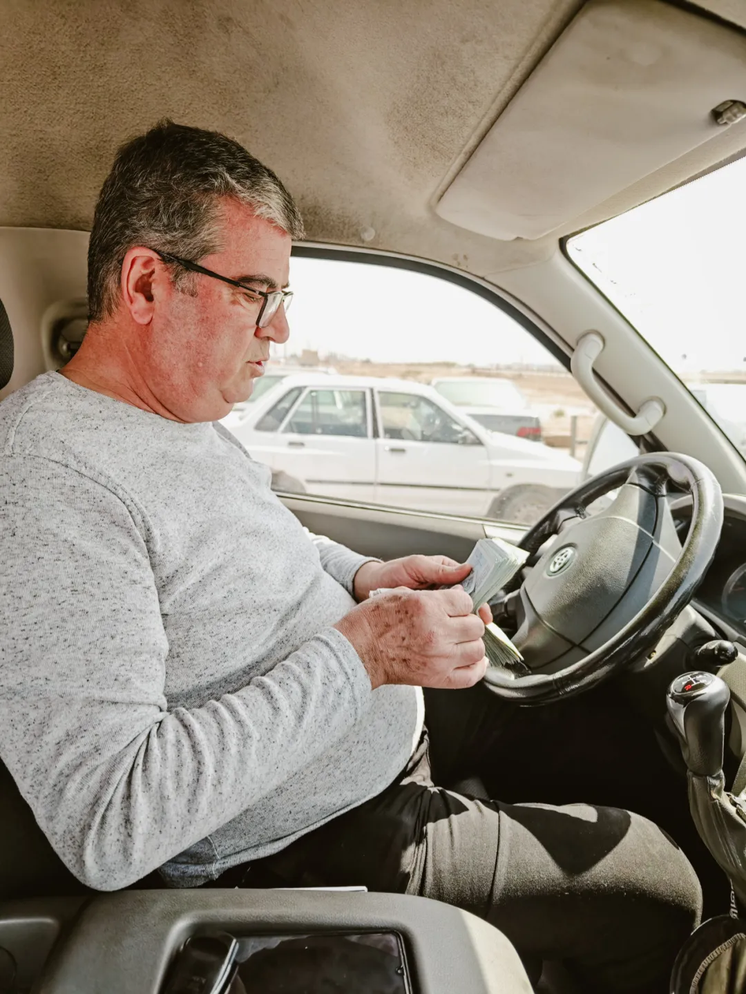 一進口岸在伊朗這邊,就有很多可以換伊拉克第納爾的黃牛。經歷過了土耳其邊境跟伊朗黃牛鬥智鬥勇的經歷,讓我們實在有點不敢相信這幫人。但這邊的黃牛似乎是被政府收編的,甚至有可能是伊拉克過來的,要比伊朗其他地方規範得多,他們都有統一的紅馬甲制服,匯率也都童叟無欺,直接就給了我們1美元換1450第納爾的匯率——比小李告訴我的1400還高。