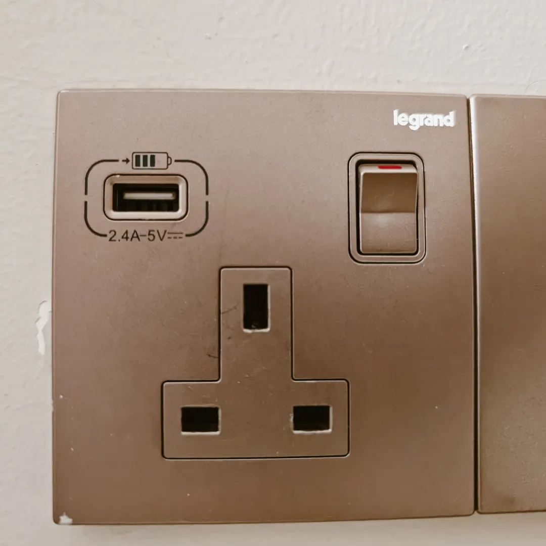 ▲但同時也有大英標插座,因為這裏曾是英國半殖民地
