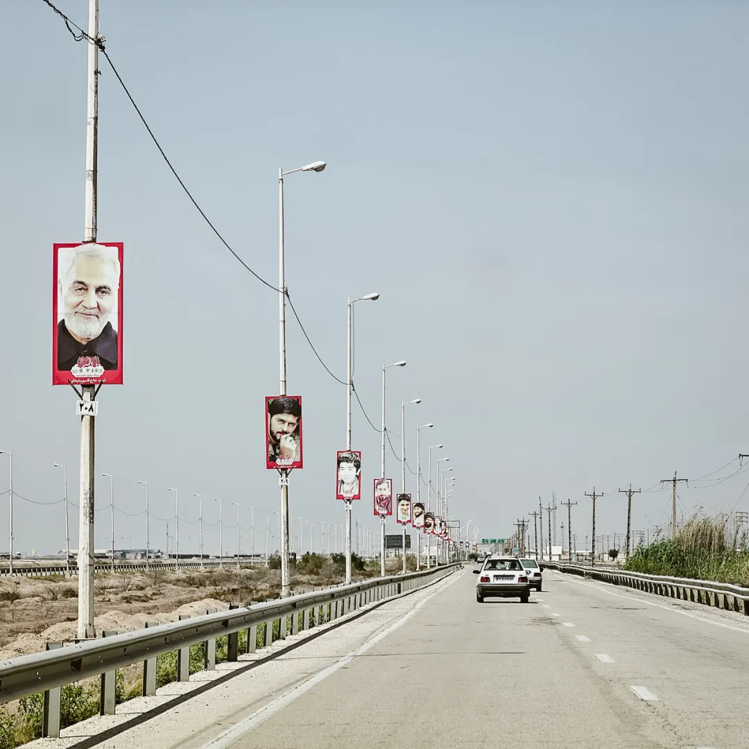 路邊這些宣傳其實已經跟兩伊戰爭沒太大關係了,過去幾十年裏海灣地區的動盪從未停止過,兩伊戰爭對於兩伊人民來説早已翻篇。後來爆發的海灣戰爭、伊拉克戰爭、教派戰爭、反恐戰爭……足以將兩伊戰爭的記憶徹底覆寫。我這次在中東期間,人們最新最強烈的記憶,莫過於2020年卡西姆·蘇萊曼尼被美軍無人機刺殺,蘇萊曼尼的畫像自然也在這一眾烈士之列,而且還是第一個出場的排頭兵。