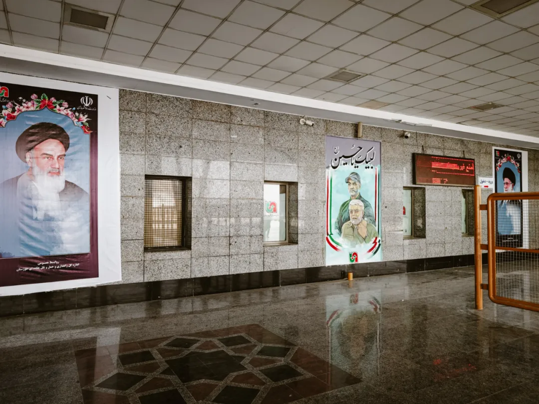在伊朗這邊的出入境大廳入口,又見到大幅蘇萊曼尼的畫像。極為不同尋常之處在於,這裏蘇萊曼尼的地位似乎已經超過了霍梅尼和哈梅內伊這兩位“最高領袖”。