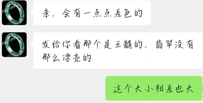 網上有不少人因此跟商家扯皮,以為買了個透亮帶綠的掛墜,結果收到之後醜到不行,賣家還硬説沒有色差。