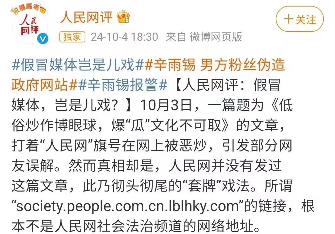 被冒名的人民網很快發了長文回擊,算是貴圈最另類的一次求錘得錘了。