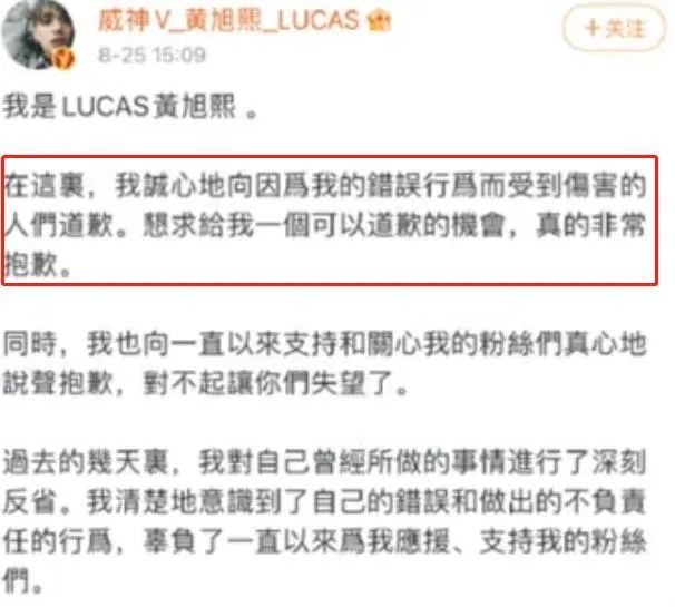 回到黃旭熙事件上,後續以他手寫信方式,讓事情暫時告一段落。