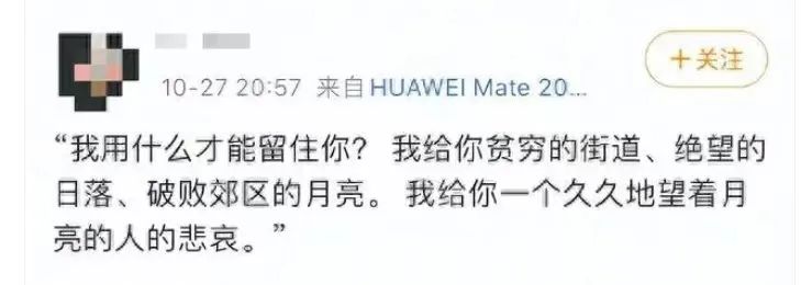 女方羅晨曾在自己微博上分享過博爾赫斯的詩,其中就有“郊區”和“月亮”的意象。