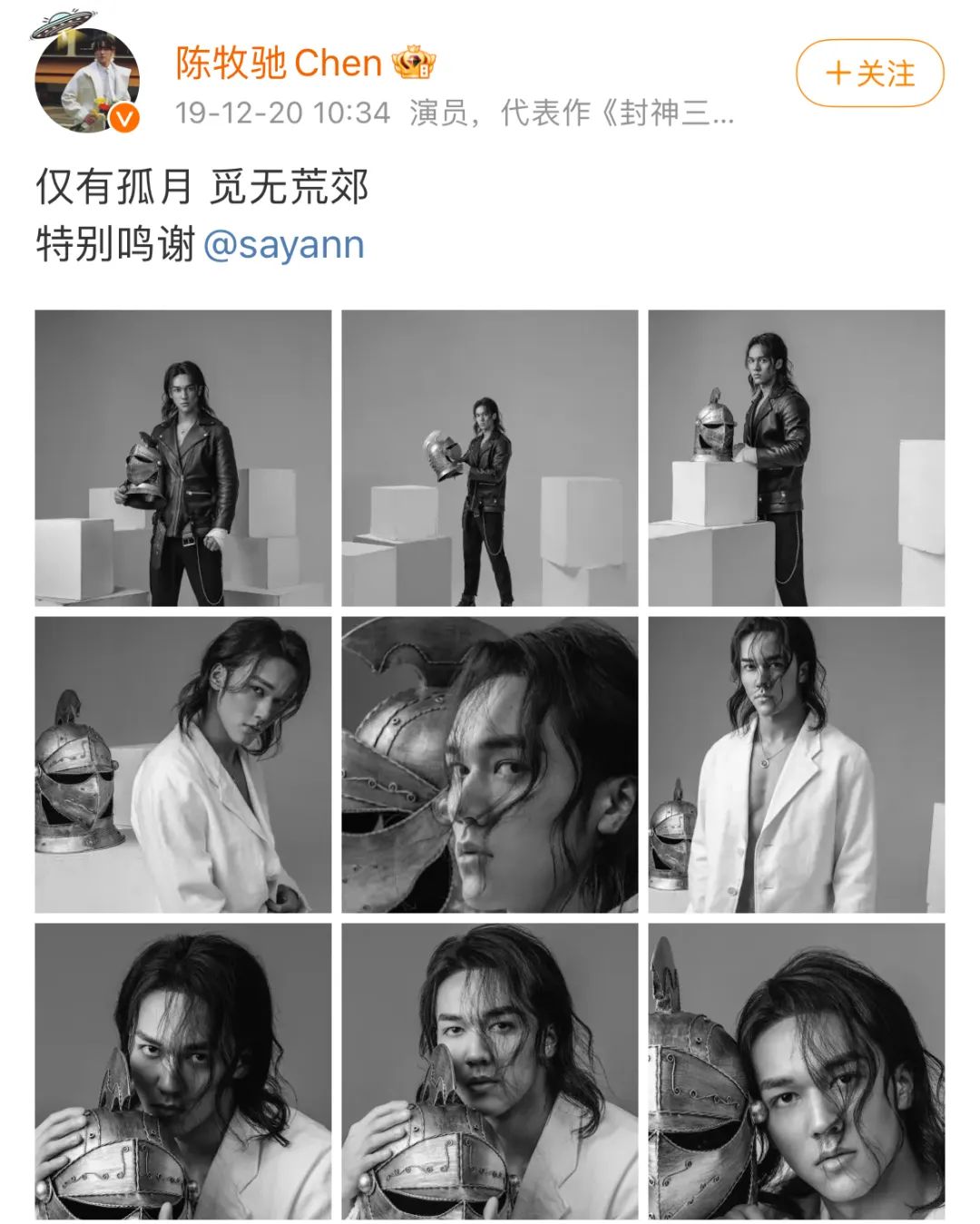 19年在封神訓練營時,陳牧馳官宣一組硬照並配文,“僅有孤月,覓無荒郊。”