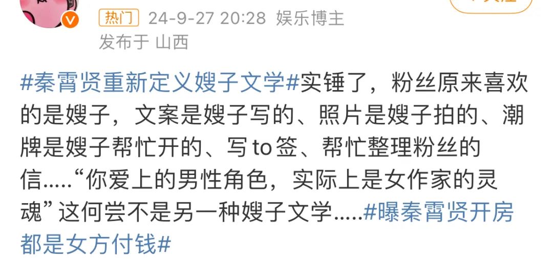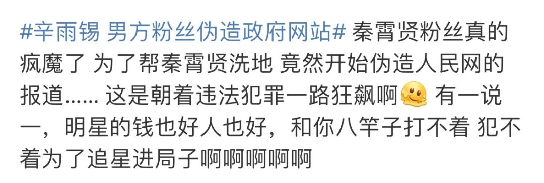 從文章標題就能看出,這粉絲是想靠着官方發聲,洗白秦霄賢。