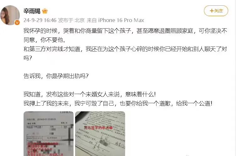 回顧秦霄賢塌房整件事,是從他前女友辛雨錫爆料開始的。