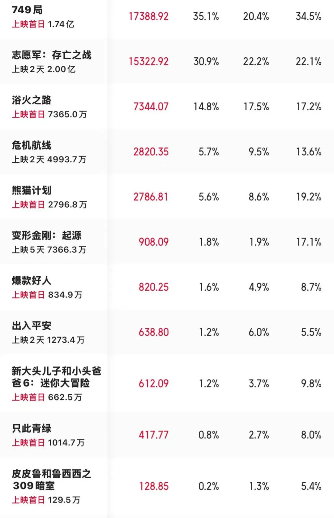而且,今年國慶檔前三天,10部新片裏有8部排片和票房倒掛,這意味着目前整個檔期的排片可能存在着很大的不合理之處。對於影院來説可能在單場票房產出上有一定的損失,不少影院經理也表示今年國慶一直在瘋狂修改排片成為了最忙碌的一個國慶檔。