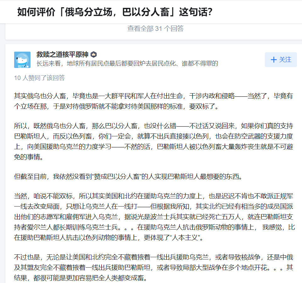 也來説説“俄烏分立場,巴以分人畜”_風聞