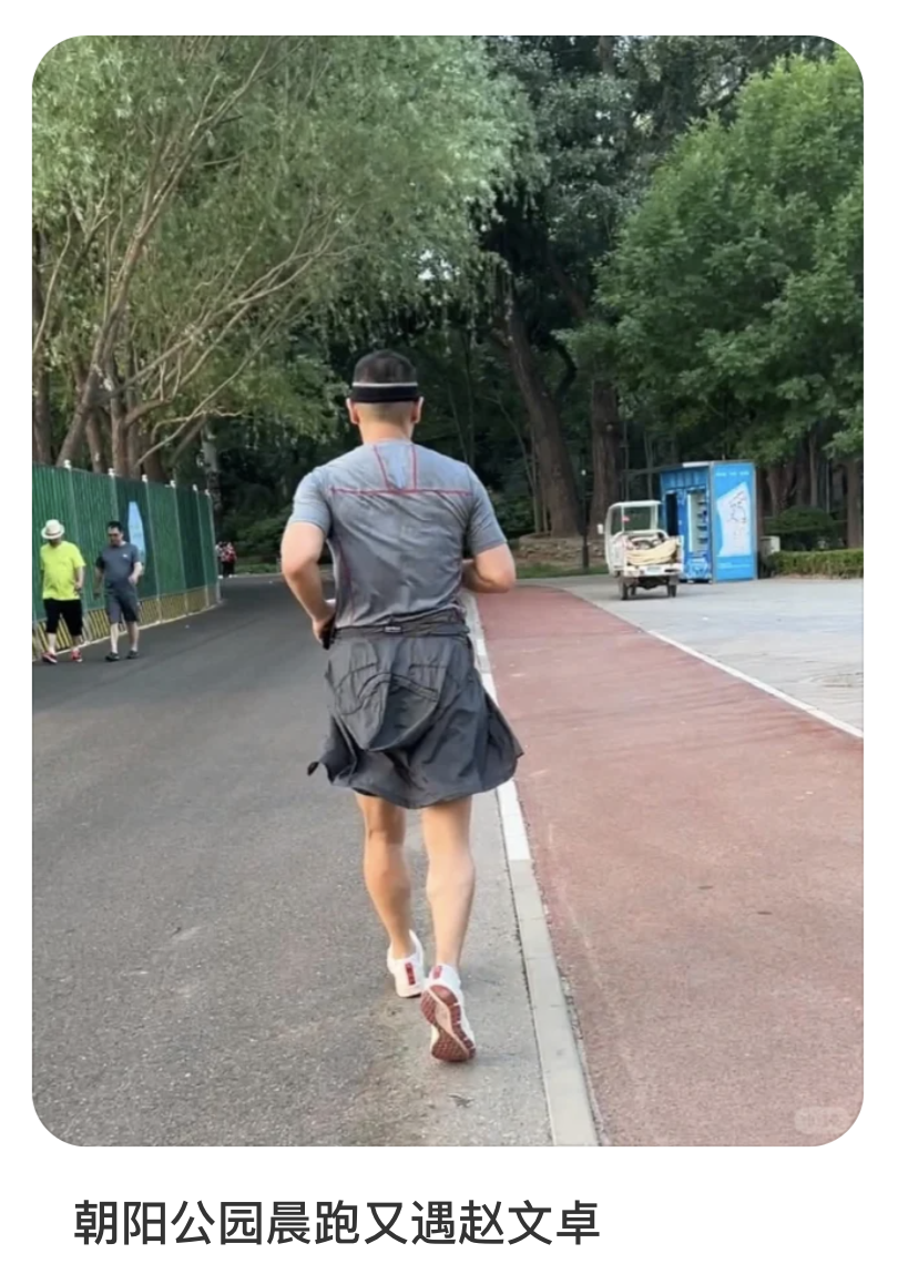 還有人説,趙文卓其實住在公園東邊的東山墅,到朝陽公園只需要過個天橋。