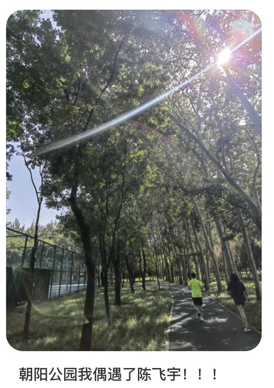 因為發哥每年都會固定來北京住一陣子,肯定會在早晨去朝陽公園跑步。