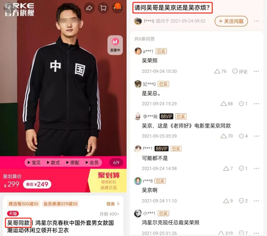 除了熱心網友的烏龍,鴻星爾克官方也樂於在玩梗和誤導的邊緣試探,推出的“弜彈科技”撞車李寧的“弜”科技,讓吳榮照穿上吳京同款衞衣貼上“吳哥推薦”的標籤等等,在不同平台社區裏產生了兩極分化的評價。近日上演的原始人直播帶貨,也有網友認為是在譁眾取寵,甚至有不尊重國外友人之嫌。