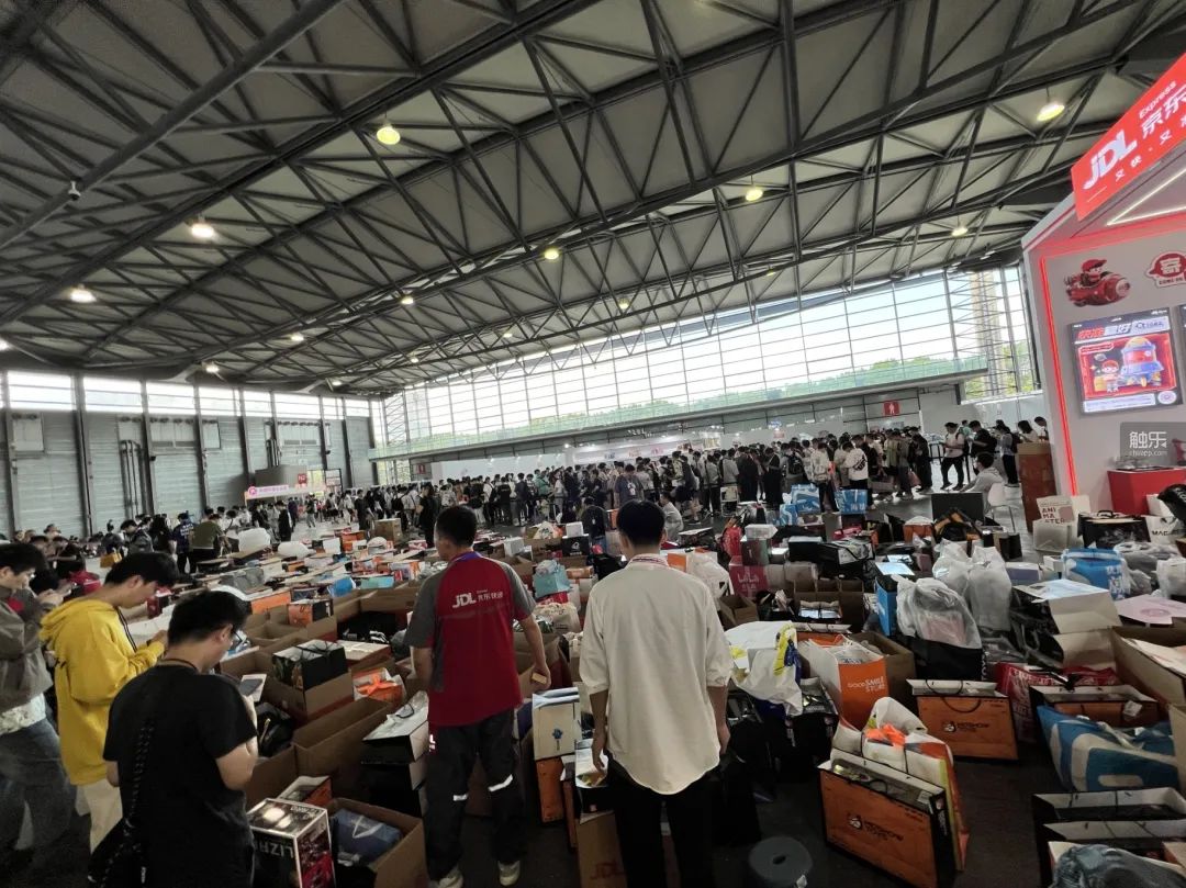站在場館裏,我的感受則相當直觀——來參展的人越來越多,展台上的作品也越來越豐富。望着面前的人山人海和快遞工作台前數不勝數的待寄商品,我尤其能夠感覺到,購買手辦的人的年齡、性別圈層都在拓寬,核心用户的付費能力也依舊保持着高水平。