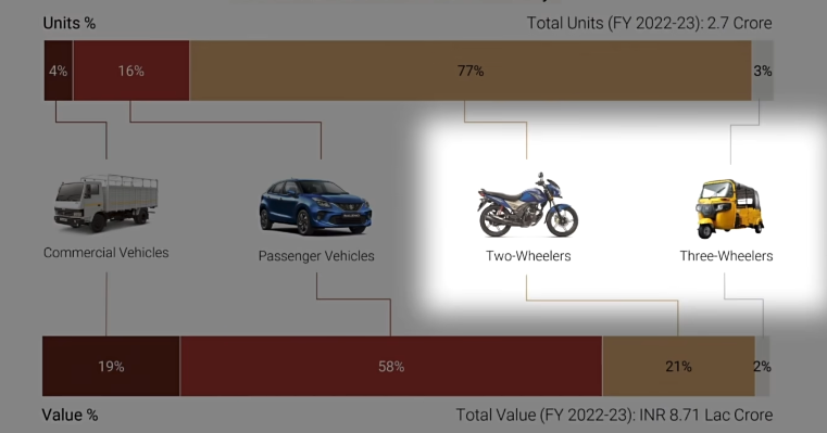 在一份來自 PRIMUS RESEARCH 的報告中顯示,2023 年,印度生產了兩千七百萬輛車( 2.7 crore )。