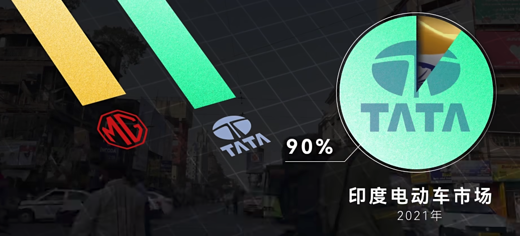以印度電動車銷量的前兩名 TATA 和 MG 為例。TATA 在 2021 年一度貢獻了九成的印度電動汽車銷量。