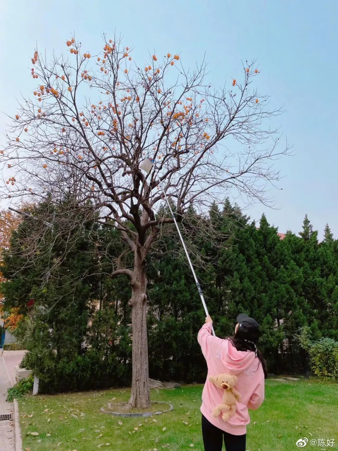 陳好在小區摘柿子