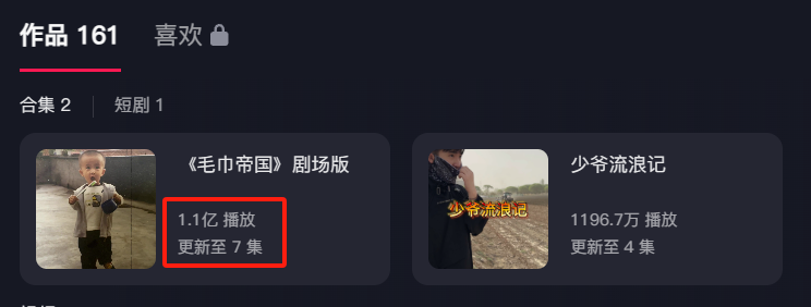 有多火呢?《毛巾帝國 》更新了 7 集就有了 1.1 億的播放量。