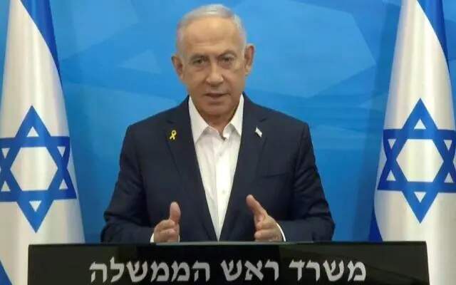 在伊朗第二次打擊以色列,併發射200枚彈道導彈之後,以色列總理內塔里亞胡顫抖地從防核打擊地堡中走出,拿着演講稿的手禁不住顫抖。他譴責伊朗,揚言要報復。