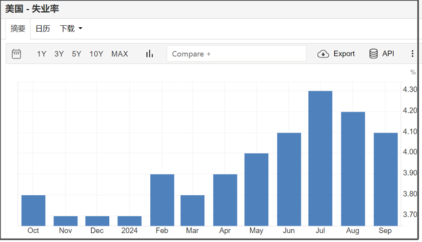 再比方説,美國4日公佈的9月失業率是4.1%,比上個月繼續小幅下降0.1%;