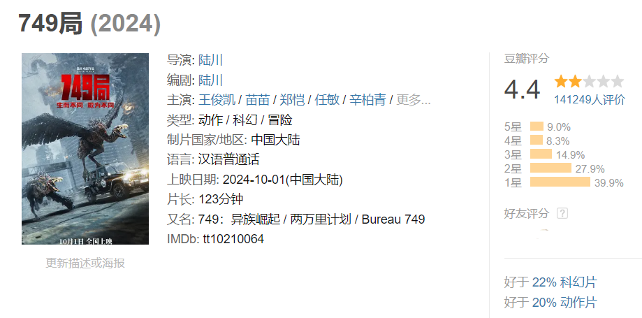 一部是爛到令人髮指的《749局》,讓花了真金白銀走進電影院的觀眾吃了一坨那啥。