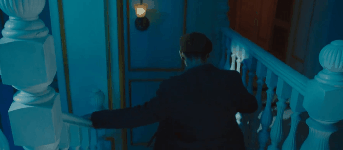 説完分手宣言,再把自己的下頜角對準鏡頭,擺完pose之後一個滑鏟就跳下樓梯。
