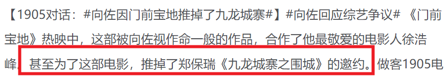 而且最嚇人的是什麼,是向佐在採訪的時候説他為了接這部電影,把《九龍城寨》給推了。