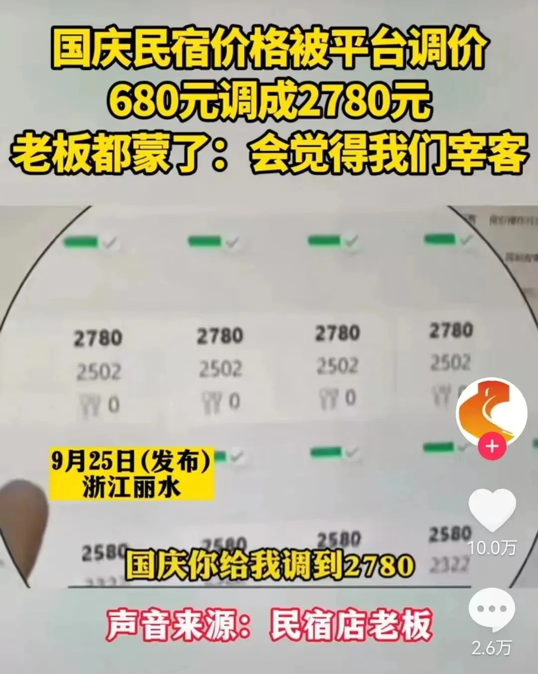 就在上個月,雲南某地一民宿老闆,發現自家680元一晚的房間,在某平台上竟顯示為2780元,可她明明沒有調整過價格,於是爆料給媒體。