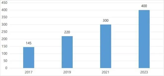 相關機構統計,從2010年進入高速發展期後,民宿市場的整體規模便呈爆炸式增長趨勢,從2017年的145億元,到19年220億元,經過特殊時期的歷練不跌反升,2023年規模達到400億元。