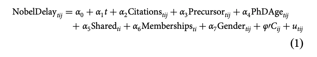 在研究中,研究者甚至還使用了一個**“諾貝爾獎延遲模型” NobelDelay**,其中包含的因子有文章引用數、是否獲得克拉克獎章或拉斯克獎、由幾名科學家共享、相關專業協會會員數量的增長率。在大大小小關於諾貝爾獎獲獎者的研究中,似乎這些因素都會若有似無地起到一些作用(但也只是似乎)。