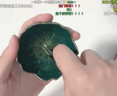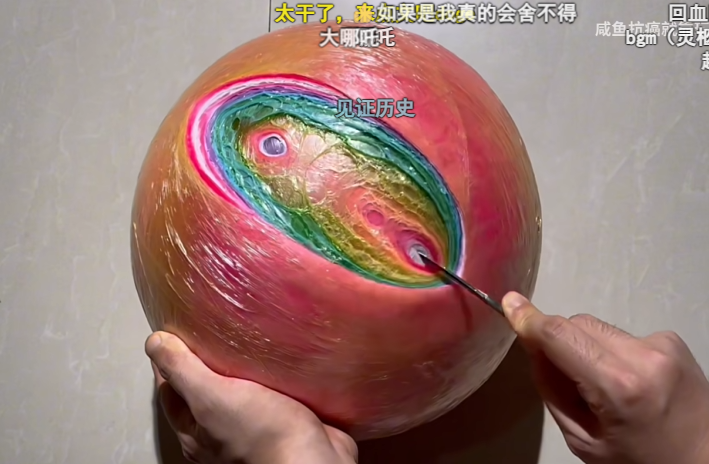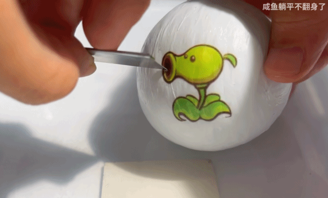 其實,盤子上的皮是 up 主塗上去的,用膠水和閃粉,風乾後就會形成這樣一層薄薄的皮,用鑷子等工具可以完整的撕下來。